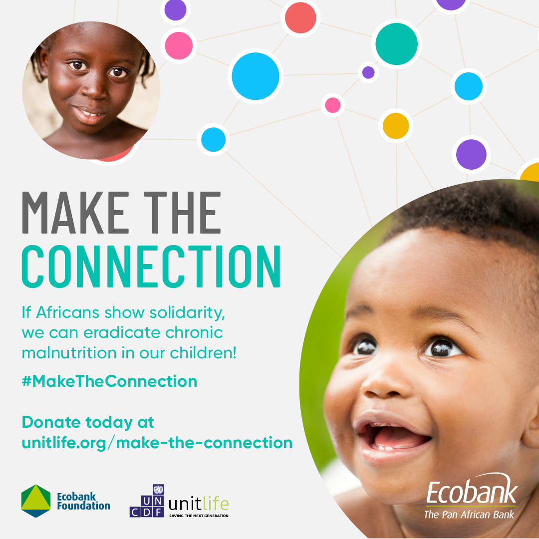 UNITLIFE, the United Nations initiative dedicated to fighting chronic malnutrition through innovation, and the Ecobank Group’s Foundation (www.EcobankFoundation.org) - the pan-African banking group with operations in 33 countries across the continent-announce the launch of the “Make the Connection” campaign, which aims to raise awareness and funds to prevent chronic malnutrition in Africa.